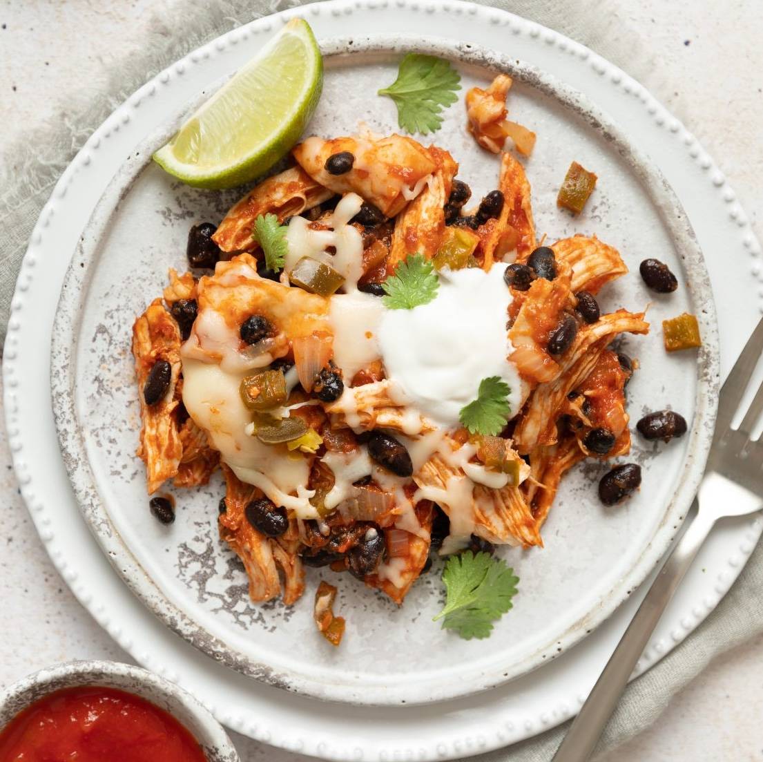 Turn chicken enchiladas into an easy dinner with this Skillet Enchiladas recipe. It is perfect for busy weeknights or even meal prep.